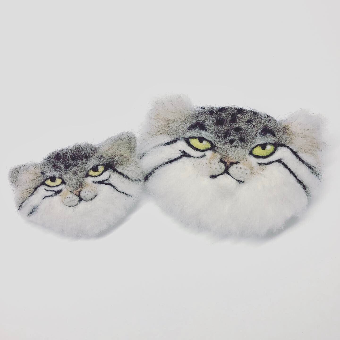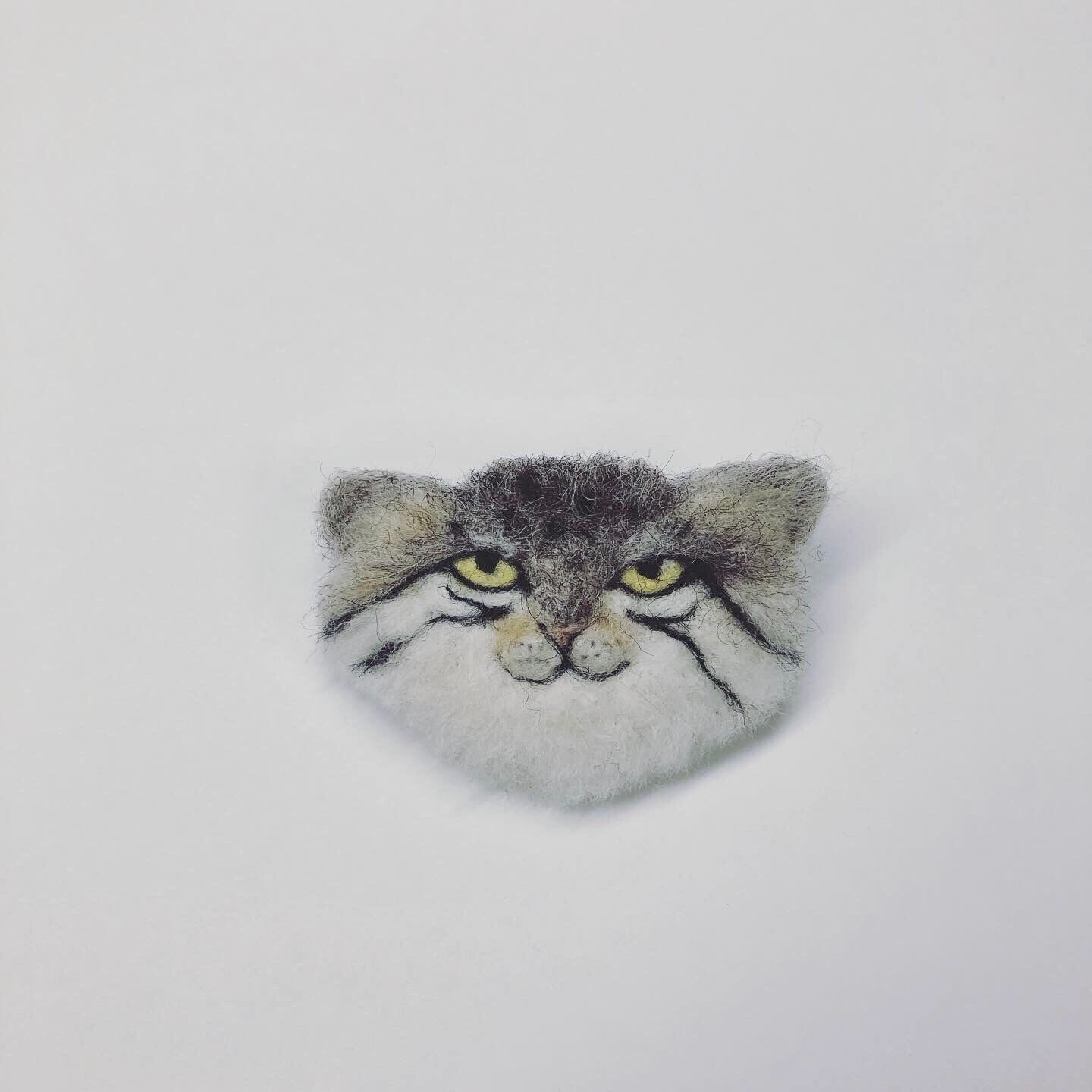 マヌルネコの赤ちゃんのブローチです。 親マヌルネコとセットでつけても◎ size 50×35mm